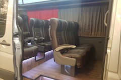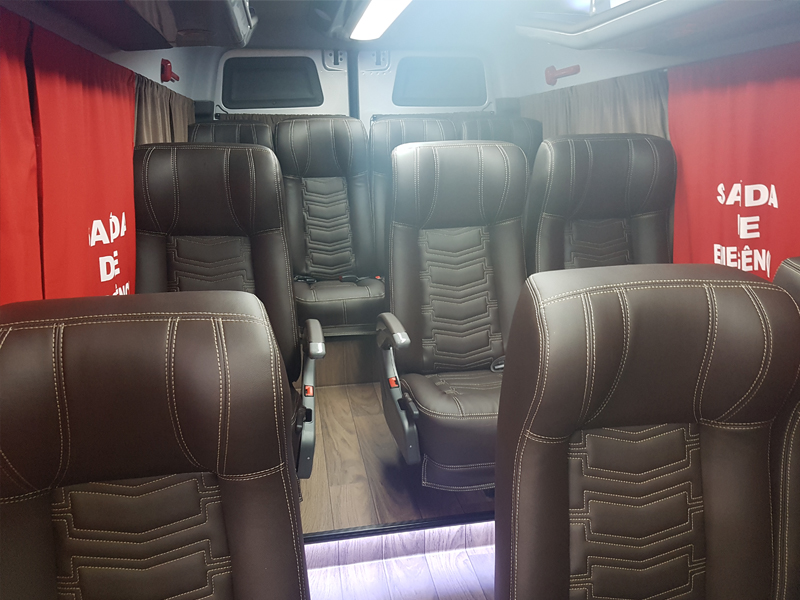 Equipados com ar-condicionado, som ambiente, tv, conexão para notebooks, tomada 110v, wi-fi, vidros escuros, poltronas reclinaveís e capacidade para até 15 pessoas.